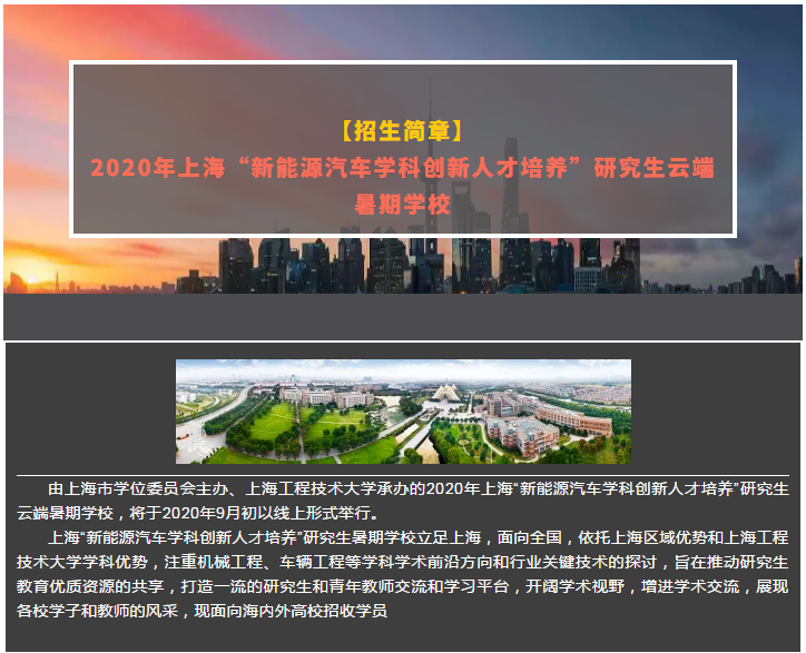 本年度研究生暑期学校的主题是“新能源汽车、智能网联汽车、车辆智能制造与检测等学科方向的学术前沿与行业关键技术”。由于疫情影响,采用网络直播、远程在线方式,开展专题讲座、学术论坛、学者沙龙、写作指导、在线参观等多种形式的活动,旨在推动研究生教育优质资源的共享,打造一流的研究生和青年教师交流和学**台,开阔学术视野,增进学术交流,展现各校学子和教师的风采。