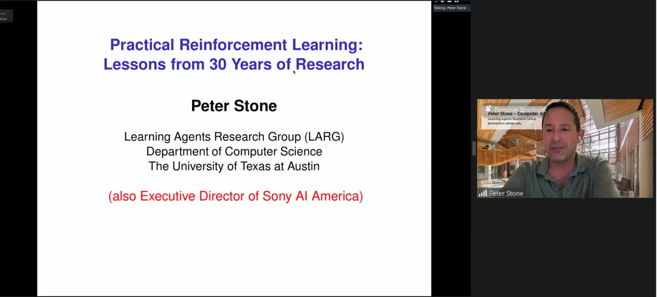 在会议主题报告环节,来自美国得克萨斯大学奥斯汀分校的Peter Stone教授作了主题为“实用强化学习:30年研究的经验教训”的精彩报告,在报告中就强化学习 (RL) 领域进行了深入探讨,并总结有关实用 RL 的经验教训。