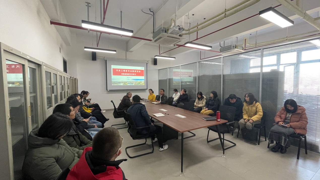 为进一步加强汽车工程工程系实验室安全管理,规范资产采购流程及大型仪器设备共享实施,强化系室教师对实验室安全、资产规范化采购、大仪共享等规范性文件实施过程掌握度,1月17日下午,汽车工程系组织全系教师开展实验室安全与资产管理制度专题学习会议,会议由实验室分管副主任徐屾老师主持。