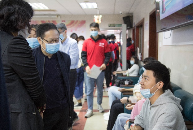 学校党政领导对本次无偿献血工作予以高度重视,校党委副书记、副校长朱晓青等一行人在学院领导的陪同下早早就到达献血现场,亲切慰问参与此次献血的师生们,仔细询问他们的身体状况,亲切叮嘱献血的师生们一定要注意休息,及时补充营养,并对他们积极参与无偿献血,勇于担当,奉献社会,传递爱心的行为做出了高度的肯定与表扬。