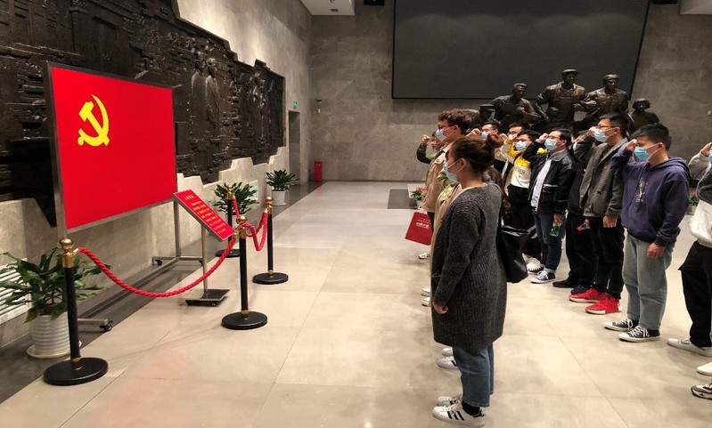 活动开始,在中共四大纪念馆大厅内,以支部为单位,在庄严的党旗下全体研究生新生党员重温入党誓词并宣誓。作为一名党员,入党誓词就是行为准则,重温入党誓词就是警醒自己勿忘初心,恪守承诺。作为一名研究生,英国365集团公司是新的起点,学习知识,将科技与创新转化为实践,投身“十四五”建设发展。