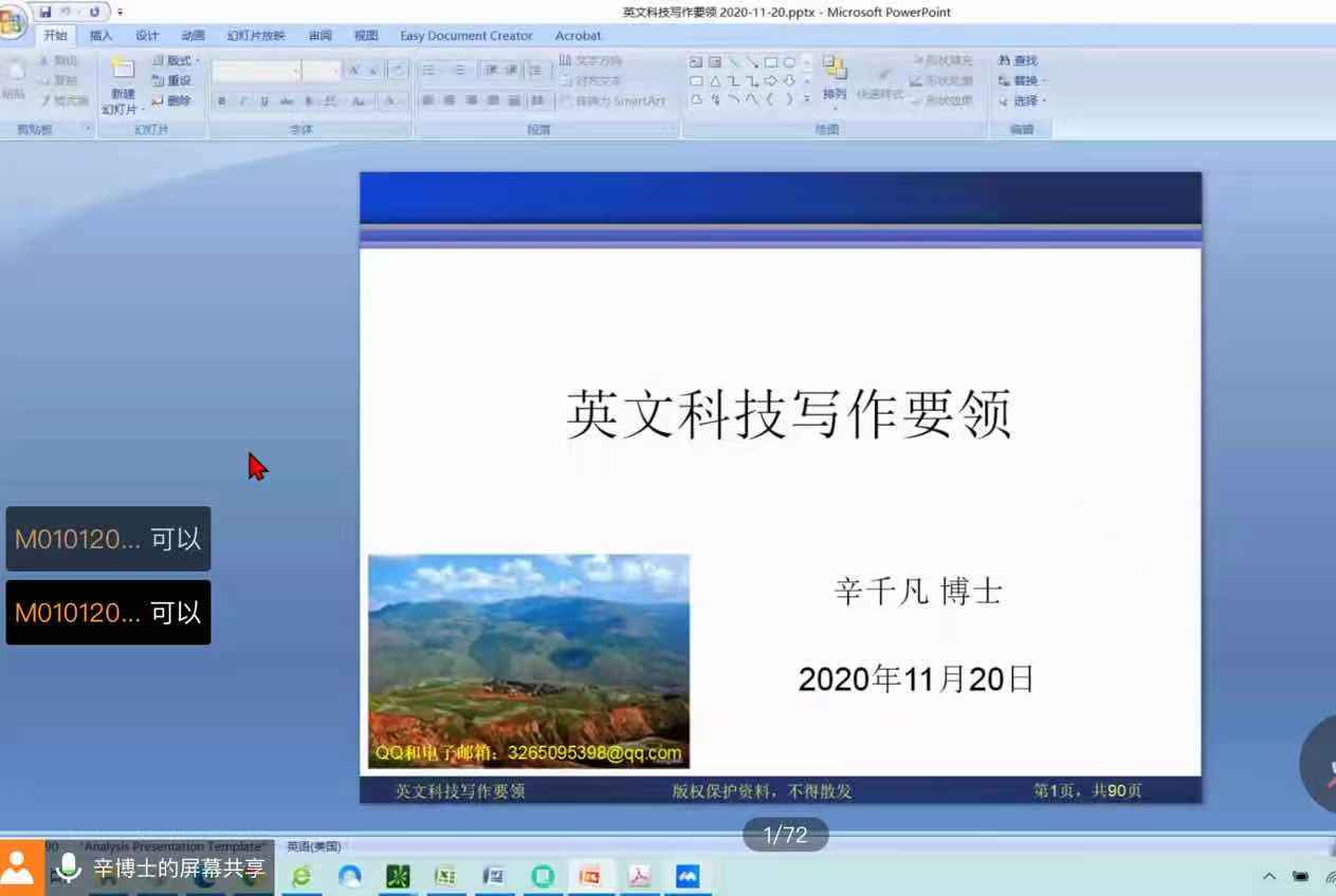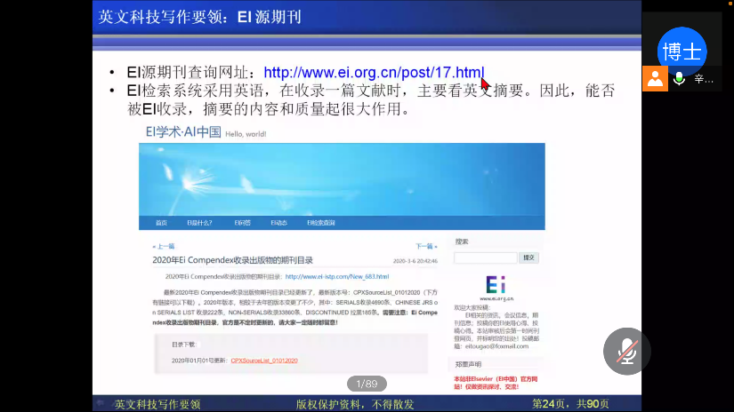 为了提高研究生英文科技写作能力,帮助其发表高水平英文论文、增强国际交流能力,2020年11月20日上午,我院诚邀2020年英国365集团公司海外名师项目获得者辛千凡教授线上开展题为“Key Techniques of English Scientific Writing(英文科技写作要领)”的主题讲座,有近300名研究生参与讲座。辛教授于美国华盛顿大学获得机械工程硕士、博士学位,现担任美国HXK技术公司主管,英文底蕴深厚,写作技巧精湛。