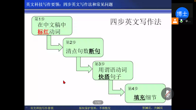 图为四步英文写作法、教授批改同学论文