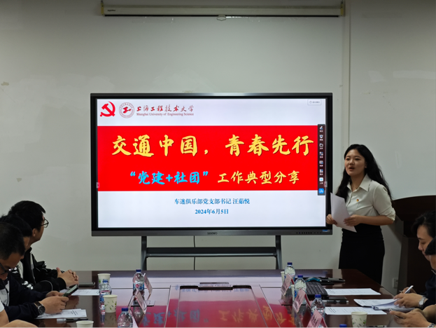 会上,学院车迷俱乐部党支部书记、院团委辅导员汪茹悦作“交通中国,青春先行”主题报告,以车迷俱乐部党支部为例,围绕“党建+社团”工作典型进行分享,详细讲述了如何基于“1”体化构建思政育人和支部管理的机制落地生根,突出支部+专业“2”特色,实现品牌工作站平稳运行,并全面落实落细“3”位一体培养方案,培养智造+人才的创新工作做法。