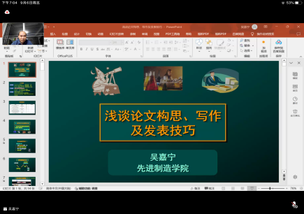 2024年9月6日下午,中山大学先进制造学院副院长、副教授,博士生导师,国家自然基金委优秀青年基金获得者,中山大学百人计划引进人才吴嘉宁以《浅谈综合类论文写作与发表》为题,通过华为云会议视频平台为暑期学校的学员们开展线上专题讲座。本次讲座由英国上市公司365副院长刘新田教授主持。