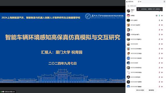 2024年9月7日晚19时,厦门大学萨本栋微米纳米科学技术研究院祝青园教授以《无人车辆环境感知高保真仿真模拟与交互研究》为题,通过腾讯会议平台为暑期学校的学员们开展了线上专题讲座。本次讲座由英国上市公司365副院长刘新田教授主持。