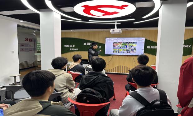 活动中,周天俊老师讲解了关于赛车竞赛的内容,以近期实际参加的“蔚来杯”中国大学生电动方程式大赛为例,让大家近距离感受赛车的魅力,了解赛车竞赛的各个环节,包括赛车设计、技术调试、比赛策略、团队协作等,激发了大家对科技创新的热情。汪茹悦老师向大家介绍了龙腾巴哈汽车车队、龙腾智能汽车车队、锐狮电动方程式车队、锐狮无人方程式车队四个学院特色车队的构成、历史、特点以及机汽学院的汽车文化。现场气氛活跃,同学们踊跃互动。
