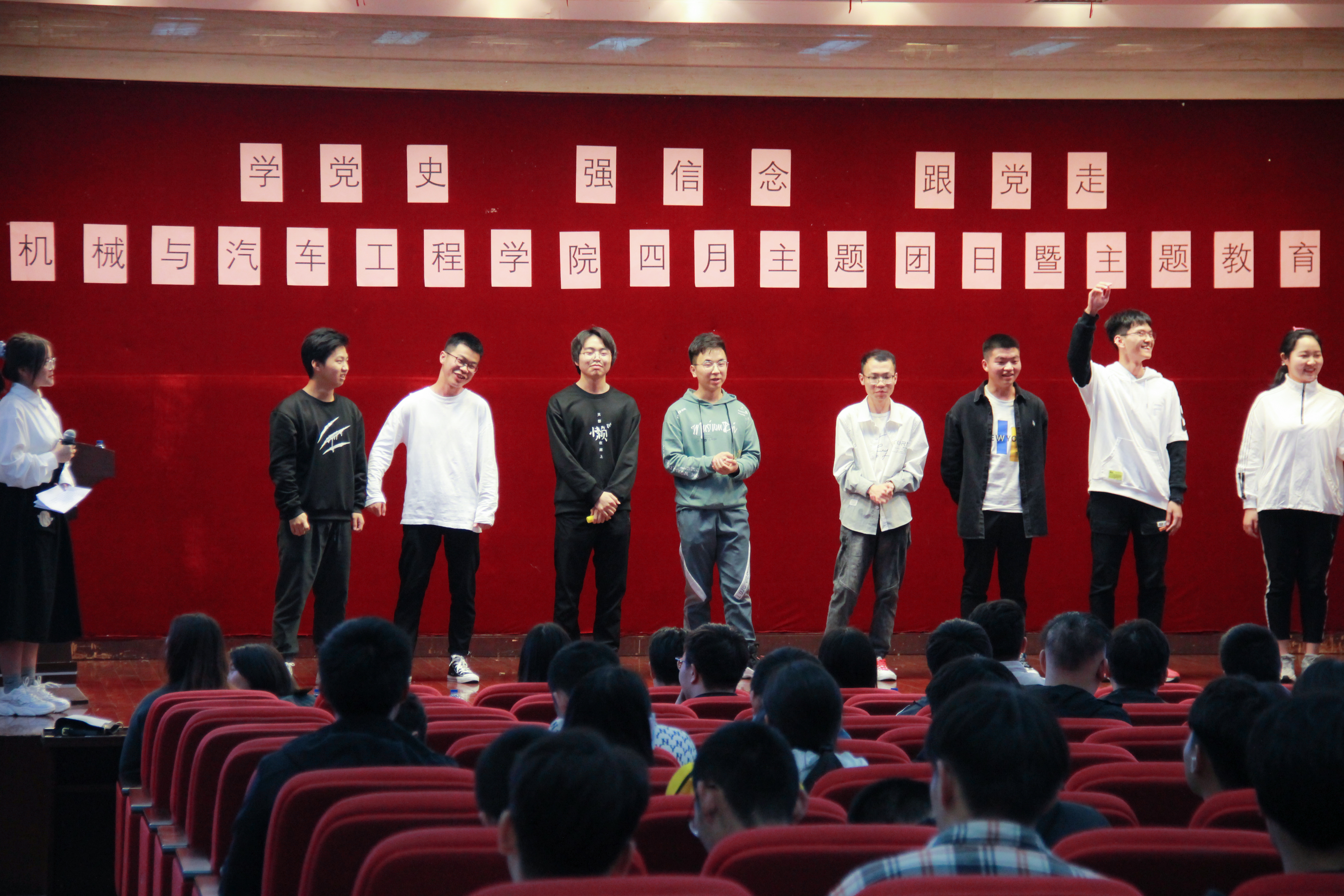 活动以竞答竞猜形式,各位团员青年积极应答、沉着应对,参与热情高涨,展现了机械与汽车学子扎实的党史理论功底和良好的临战素质。比赛过程中秩序井然,充满了欢声笑语,选手们精彩的表现赢得了台下观众阵阵掌声。