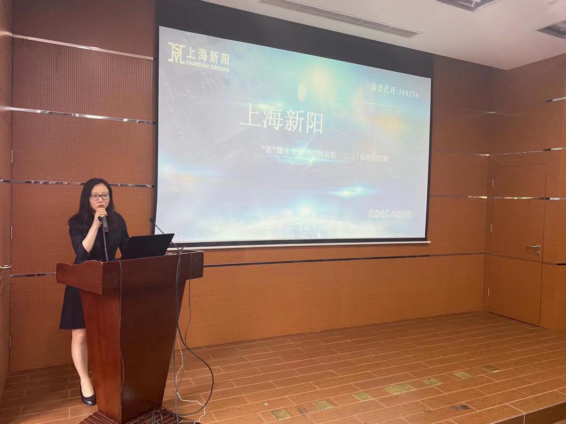 最后,上海新阳半导体材料股份有限公司副总经理白金香做企业招聘宣讲。她结合公司基本情况,对公司的职位设置、岗位需求、企业人才培养路径、未来职位发展方向等做了详细介绍,她希望更多工程大人加入到企业中,共同推进我国半导体行业的进步和发展。
