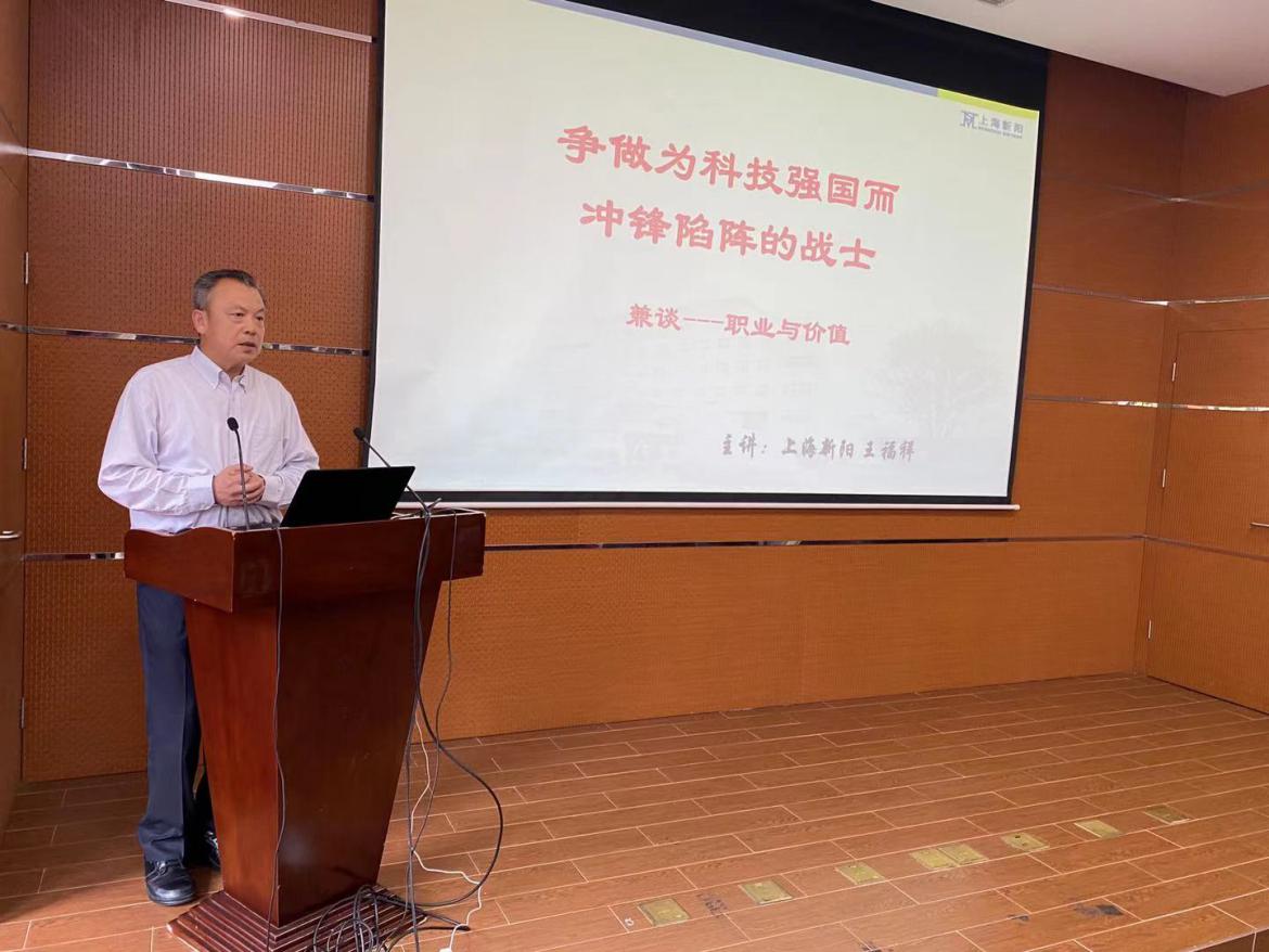 上海新阳半导体材料股份有限公司董事长王福祥以“争做为科技强国而冲锋陷阵的战士,兼谈职业与价值”为主题为同学们先进行招聘动员。王福祥董事长从如何做好职业定位、确定职业方向、明确职业目标三个方面教会同学们科学做好职业规划。在国际竞争日趋复杂的局势下,面对实现中华民族伟大复兴梦的这一光荣使命,他呼吁青年大学生自觉树立责任意识,主动培养高尚道德情操,在推动国家科技发展的战线中,冲锋陷阵,攻坚克难,争做勇往直前的“战士”!