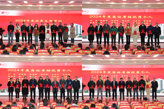 在表彰环节,学院对何涛等34位岗位考核优秀个人和刘飞等11位优秀支部书记进行了表彰,与会领导为获奖教师颁发了荣誉证书。