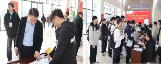 学院高度重视研究生复试工作,多次部署谋划,健全保障机制,力求打造公平、高效、温馨的考核环境。4月10日上午9点,交通楼内朝气蓬勃,来自五湖四海的考生们怀揣梦想有序入场进行资格审核,2025年硕士研究生复试正式启幕。学院学工组长董春亮老师与研辅团队全程护航,9大专业签到处分区明确,覆盖机械制造及其自动化、机械电子工程、机械设计及理论、车辆工程、智能机械设计及动力学、智能制造技术、机器人工程、新能源及智能汽车、能源动力前沿方向。志愿者们化身“研途向导”,细致核验考生材料,从身份证件到承诺书,从学历认证到考生信息表,层层把关确保招考规范。笔试考场指引服务贴心周到,确保考生顺利到达指定考场,整个复试报到过程有序开展。