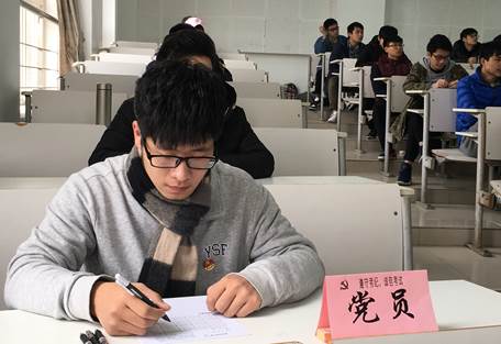学院学生党支部推行学生党员“考场亮身份是为了进一步规范考风考纪、建设诚信考风、发挥党员先锋模范作用,旨在通过印有党员字样的红色席卡使学生党员在考场中亮明身份,接受广大师生监督,发挥党员表率作用,树立诚信考试的示范榜样。