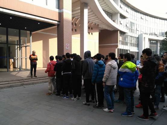 为进一步强化消防安全教育,提高师生火场应急逃生和自我防范能力,12月9日上午,学院在实训楼4号楼举行消防疏散逃生演练。本次演练目的即“珍爱生命、远离火灾”。学校保卫处相关人员现场指导同学们如何逃生疏散、应急救援等,学院实验室教师参与了演练的引导疏散指挥工作。整个演练活动组织严谨,紧张有序。参加演练的同学严肃认真,服从指挥,不抢先、不推搡、不拥挤,没有发生推、拉、拥、 挤等现象。集合完毕后各班班长迅速清点人数并向现场总指挥汇报。从下达命令演练开始到最后一名同学疏散、 到安全集中点,仅用了 2分 50秒。