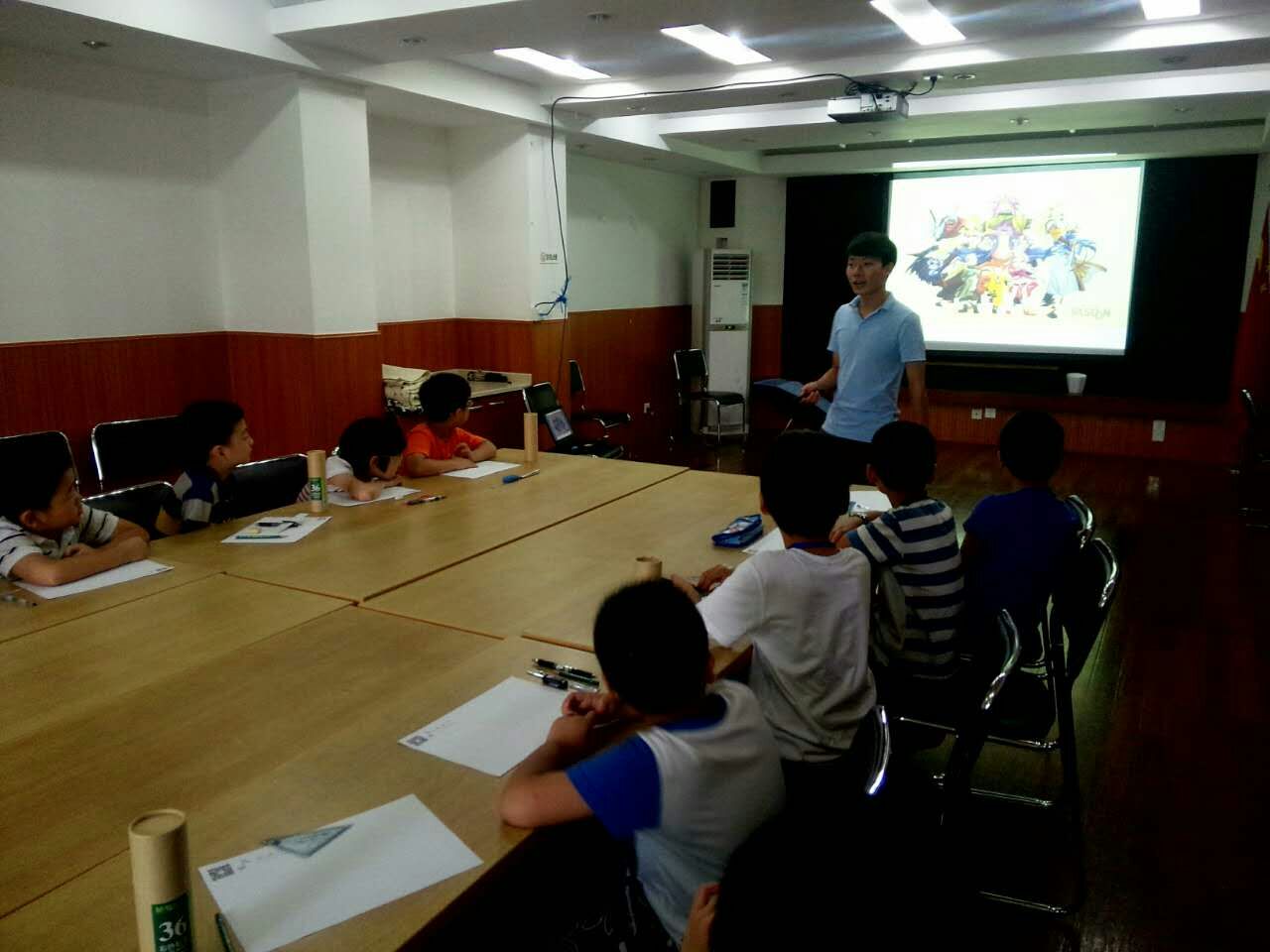 为了迎合小朋友们平时的兴趣,街道里特别为小朋友们安排了一趟卡通动漫课。将小朋友的爱好和课堂紧密相连,寓教于乐。上课伊始,授课老师将各式各样的动漫卡通形象以PPT的形式展现给下面的小朋友,一下子吸引了小朋友的注意力,争先举手回答图上是哪部流行动漫或是卡通形象。然后老师教他们自己动手设计一张属于自己的课程表,并在旁边配上自己喜欢的卡通形象。小朋友们都乖乖地跟着老师一步一步的画,等画完了课程表的整体框架后,又在老师的带领下在所画课程表的旁边画上动漫人物。随后,又加以勾线和涂色,小朋友充分发挥了自己的想象力使得自己的画瞬时活灵活现起来。