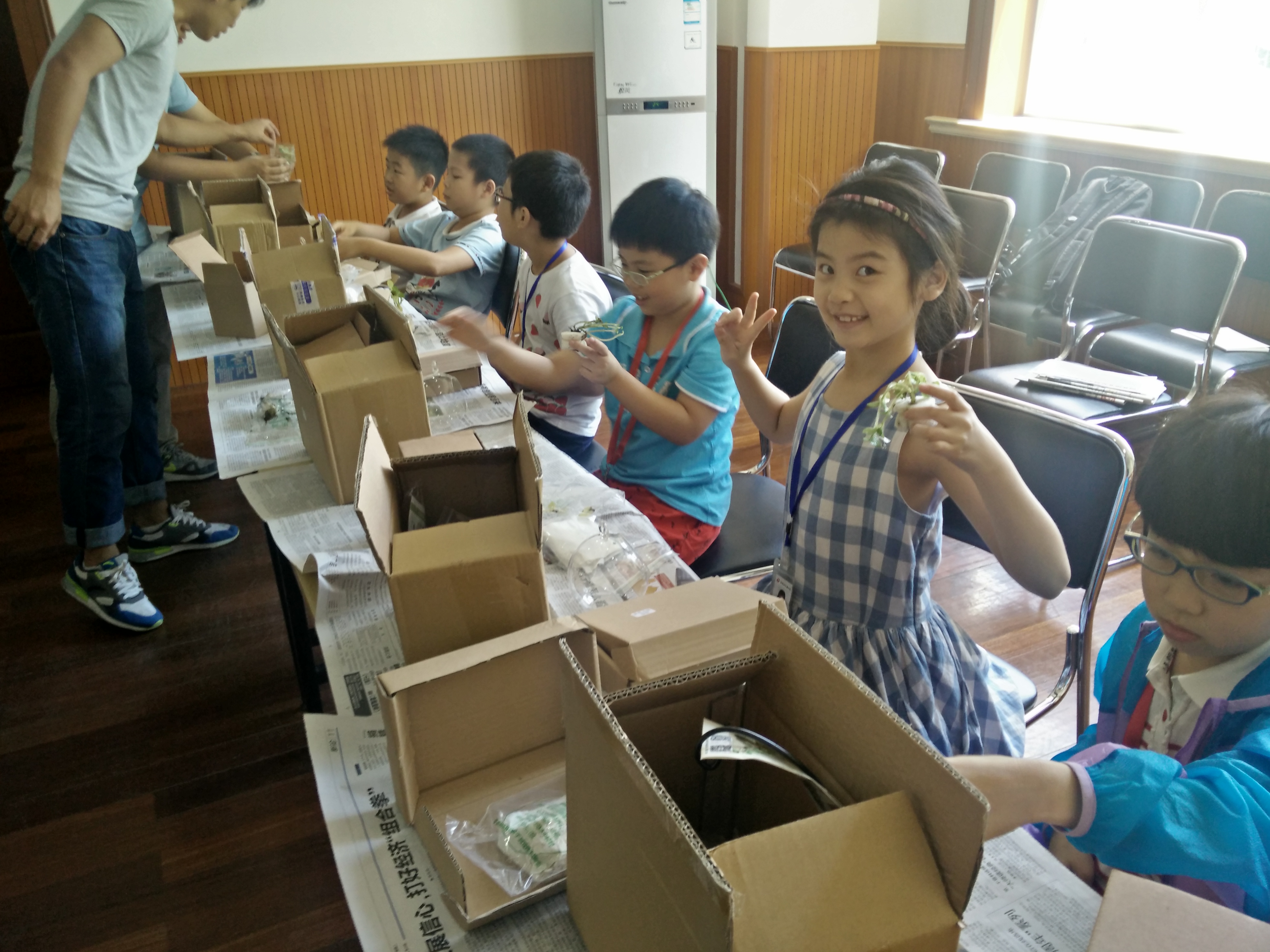 为了让小朋友们增加实际动手能力,开心独立营中二班的小朋友们迎来了一节妙趣横生的种植课——制作微型盆景。制作微型盆景比起一般的种植植物要复杂很多,需要用到的材料也非常多,小朋友们跟着志愿者老师一步一步完成制作。首先在圆形玻璃球内铺上一层小石子,再将干燥的碎苔藓和泥土铺在石子上,接着在泥土中挖一个小洞将植物种下,用新鲜的苔藓盖在泥土上,稍作装饰后便完成了制作。小小的一个圆形盆景用到的材料却非常多,稍微开一下小差就会错过一个步骤,为了完成自己的作品小朋友们都认真仔细地听好步骤,在志愿者们的帮助下,一件件各具特色的小盆景就诞生啦。这样一节独特的种植课让小朋友们在常规的课堂教育之外,增强自己的动手能力,有益又有趣!