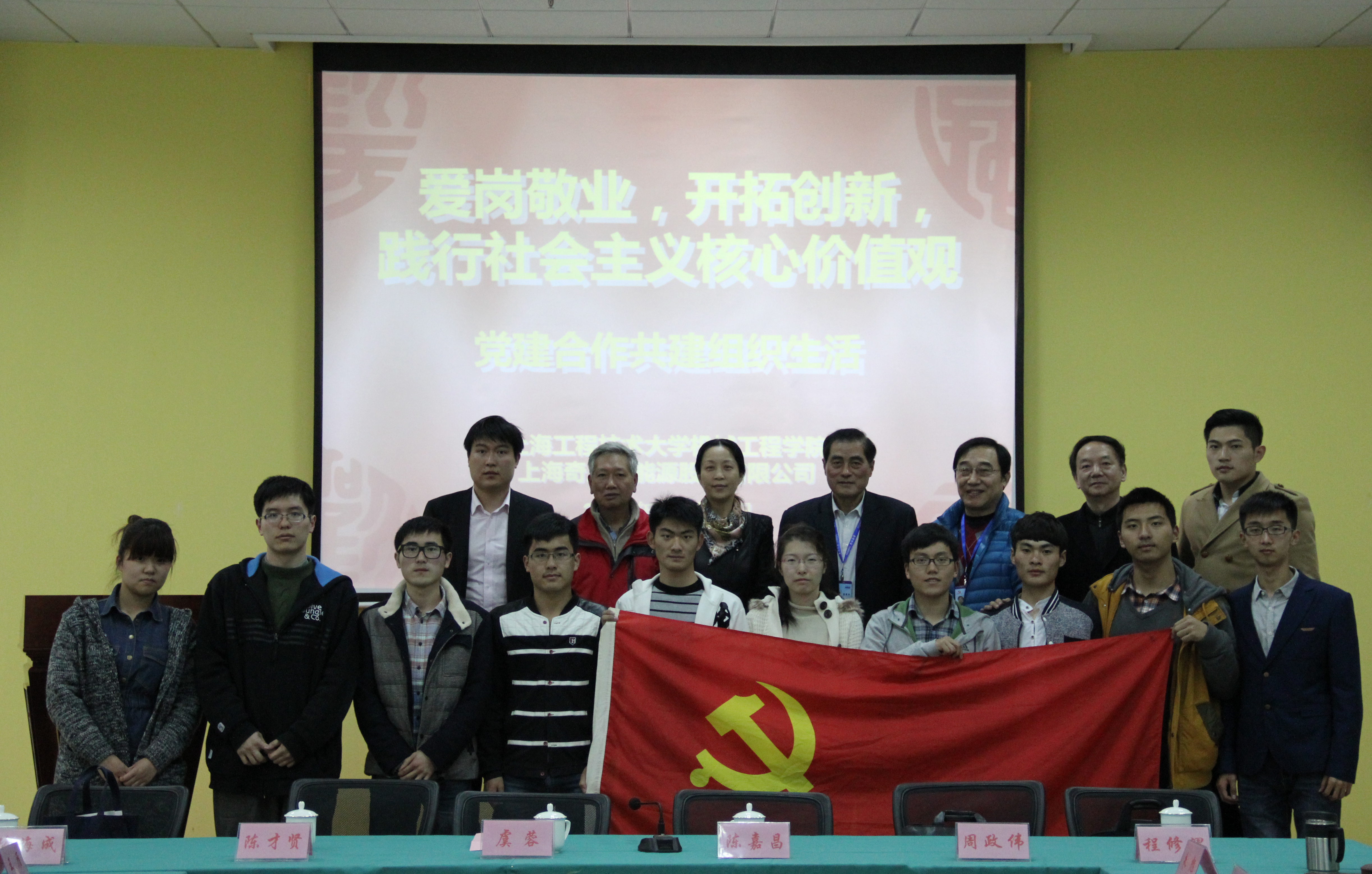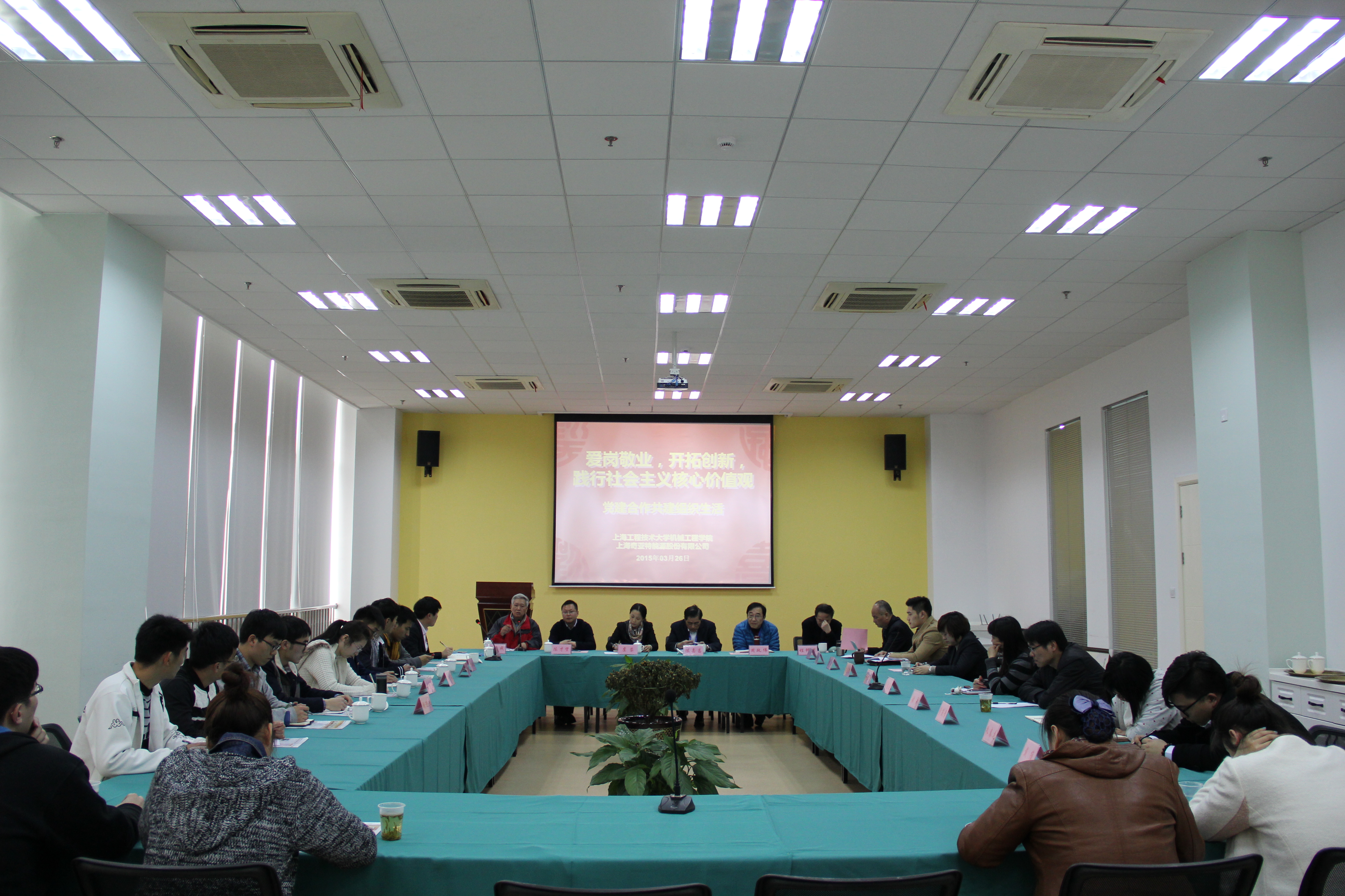 为促进建设“学习型、服务型、创新型”党组织,加强基层服务型党组织建设,提升党建工作科学化水平,3月26日下午,机械工程学院学生科创党支部联合上海奇士企业党总支在奇亚特中心会议室开展主题名为“爱岗敬业,开拓创新,践行社会主义核心价值观”的专题党组织生活。出席此次组织生活的领导嘉宾有上海奇士企业发展公司党总支书记陈嘉昌、公司董事长秘书周政伟、机械工程学院党委书记虞蓉、学院关工委委员张海成、公司党总支委员程修渭以及公司相关领导和支部党员同志。此次组织生活由学院学生科创党支部书记王雁主持。