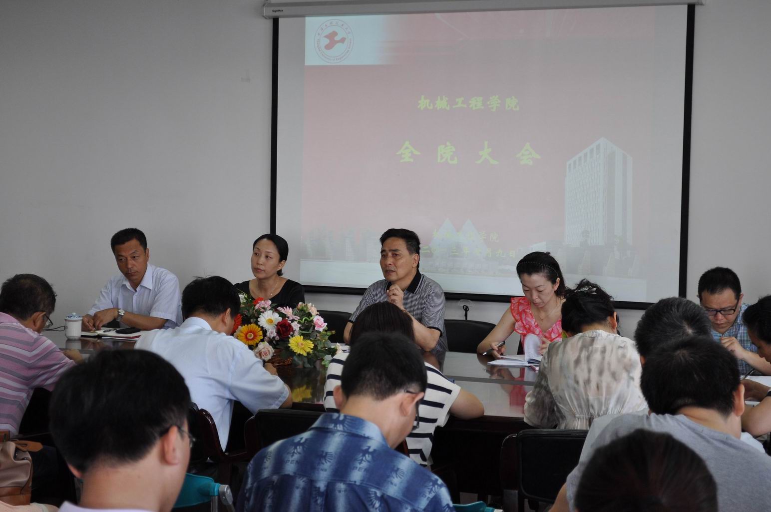接着梅元媛副书记、张敏良副院长、茅建副院长、潘颖副院长分别从学生工作、实验室工作、教学工作、学科与科研工作上对2013年上半年工作进行总结,并对下半年工作的开展进行布置。重点就学校转型发展中遇到的问题进行了阐述,就2014年完全学分制的应对措施进行了部署。