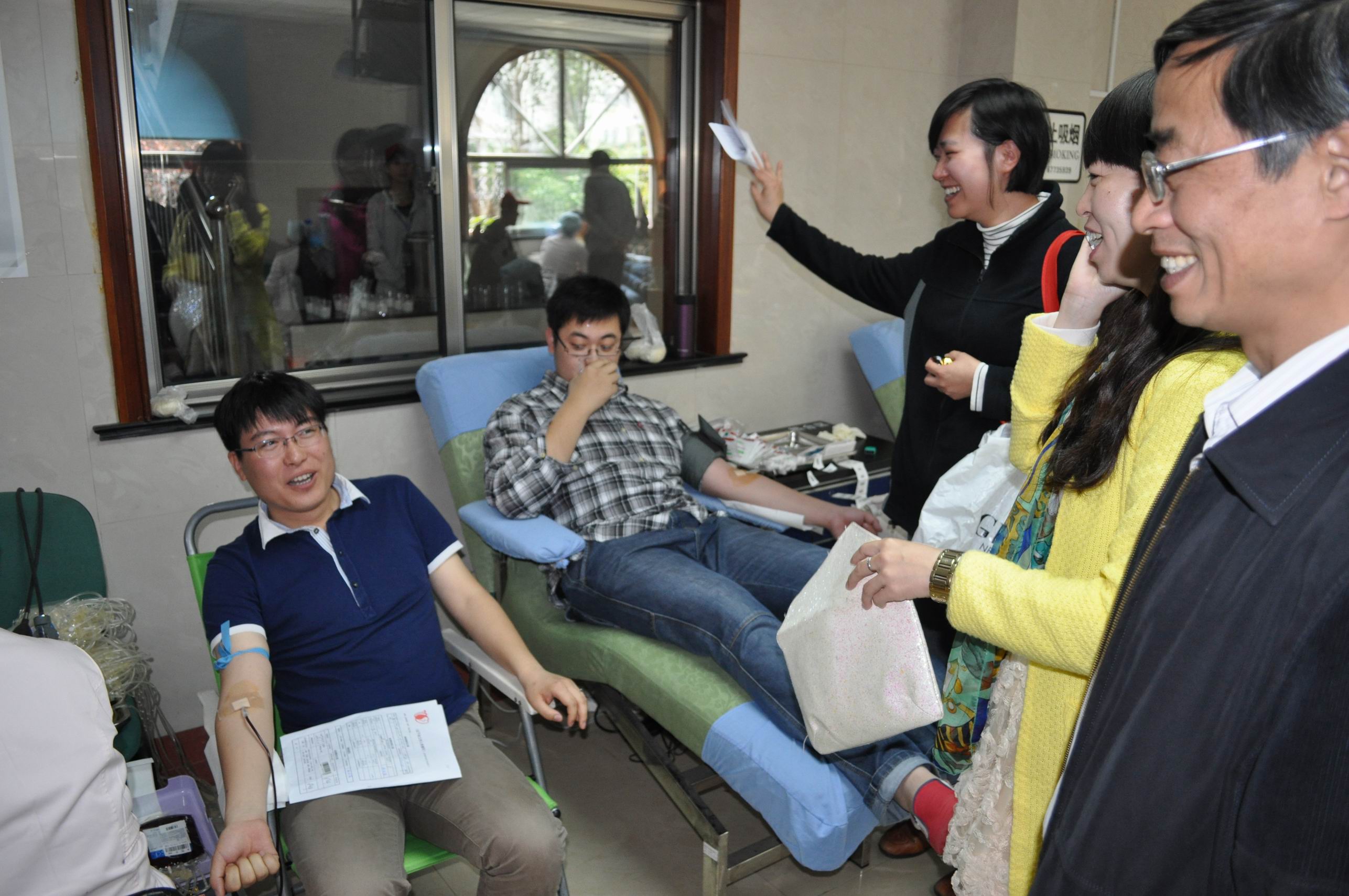 4月25日上午十点,在这个春意盎然的天气里,机械工程学院辅导员王雁老师来到了松江献血站,以自己的实际行动来鼓励学生参加无偿献血活动。