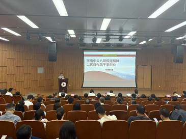 虞蓉传达了学校深入贯彻中央八项规定精神学习教育警示教育会精神,并剖析了反面典型案例。她强调,作风建设永远在路上,要以学为先、知行合一,不断淬炼党性修养,筑牢拒腐防变思想防线;要以案为鉴、警钟长鸣,增强纪律意识和法治观念,树立和践行正确政绩观;要以实为要、见行见效,持续推动集中整治走深走实,形成长效机制,营造风清气正的良好氛围。