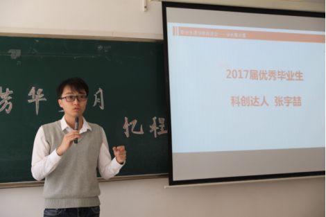 2018届毕业生考取东华大学的申妍学姐在分享中感谢导师对她的指导和关心,嘱托同学们在考研的路上要找准复习规律,规划好复习时间,有信心、有耐心。考研的过程也是自身知识架构不断完善的过程,希望同学们珍惜在校的时间,勤奋进取,考取理想院校。