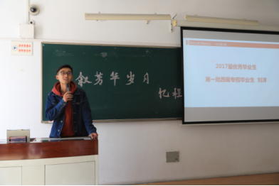 2017届优秀毕业生第一批西藏专招刘洋目前为西藏萨迦基层公务员,刘洋同学首先感恩母校的培养,介绍了在西藏萨迦作为基层公务员的主要工作范围和生活,鼓励在场的同学们树立理想信念,立志高远,服务祖国西部,做有情怀的工程大人。