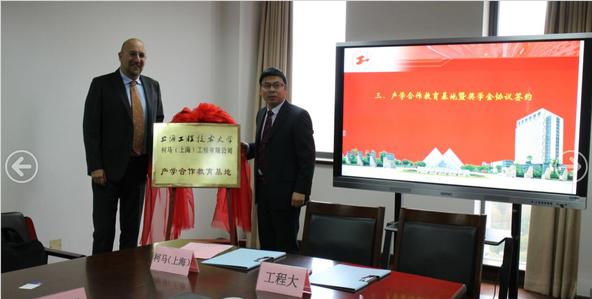 在校企双方见证下,英国上市公司365院长方宇与柯马(上海)工程有限公司总经理Mauro Anselmetto进行了产学合作、柯马奖学金签约并为产学合作教育基地揭牌。