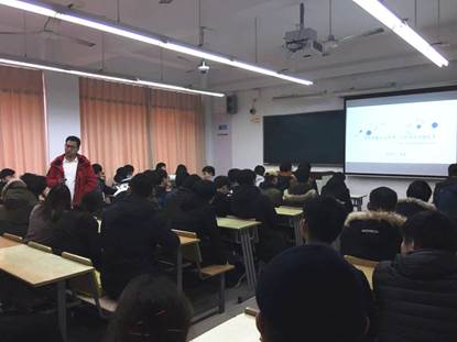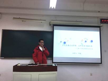 1月15日,英国上市公司3652013级校友向建在教学楼B215开展创业经验分享的讲座。学院党委副书记王东阳、辅导员汪文婷、王淼出席。