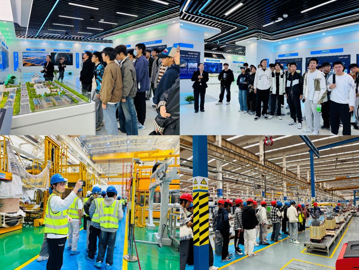 企业技术人员引导学生有序参观正泰创新体验中心与智能化工厂车间。在正泰创新体验中心,学生们近距离观摩电气行业前沿创新产品与技术成果,了解从技术研发、产品设计到成果转化的全链条流程;学生们走进智能化工厂车间,自动化生产线、智能检测系统、数字管控平台等现代化装备有序运转,技术人员现场讲解生产工艺优化、智能设备运维、质量精准管控等关键环节,并针对学生提出的专业疑问逐一解答,帮助学生理解智能制造在实际生产中的应用逻辑。