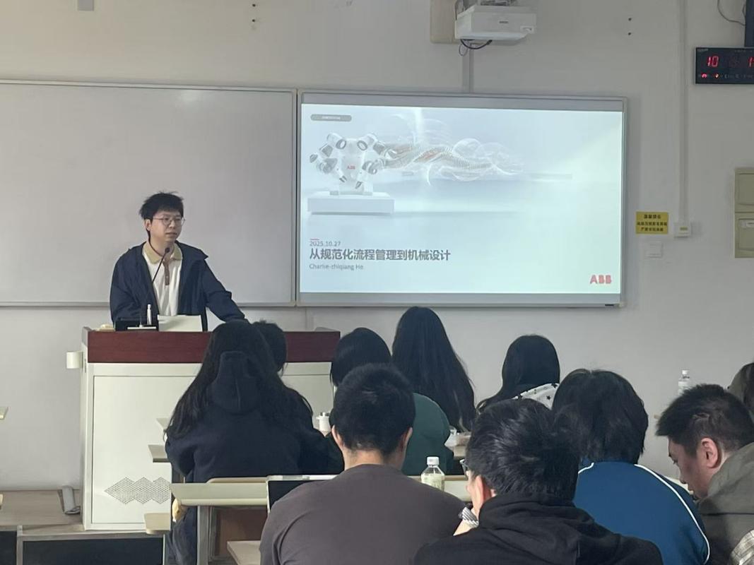 10月27日,《机械设计》课堂上,何志强为同学们带来《从规范化流程管理到机械设计》专题讲座,分享了一个产品从机械设计到产品设计如何做到规范化流程管理,介绍了机械设计本身蕴含的流程思维,以及机械设计中的标准化、模块化、接口控制等核心原则。结合多年的从业经验,何志强还从简历的设计撰写、投递技巧和面试经验等多方面进行了分享。