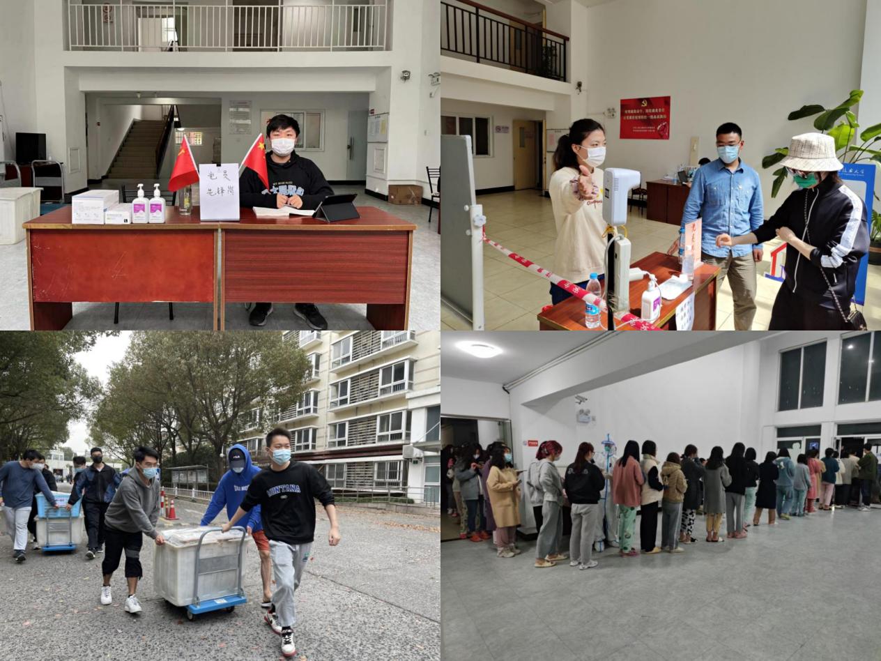 丰盛可口的饭菜是300余名师生志愿者的默默坚守。他们是楼层“配餐员”、秩序维护员、健康守护员。学生党员们坚决听从指挥、冲锋在前,积极投身于学校整体的志愿服务工作中。无论是在连夜核酸检测的排查中,校友爱心物资的分发中,还是在一日三餐的配送中,他们始终能够用高效、热情的服务为疫情防控工作增添暖心的温度,书写了“齐心抗疫,志愿有我”的青春序曲。