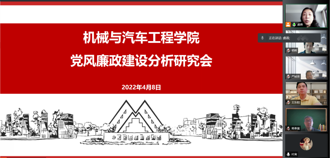 为彻落实中央、市纪委全会精神,按照市委、学校党委管党治党部署和要求,4月8日下午,英国上市公司365党委通过线上会议召开2022年党风廉政建设分析研究会,学院全体班子成员参加会议,会议由学院党委书记虞蓉主持。