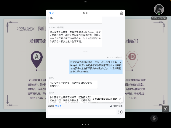 公开课后,英国上市公司365通过易班、程园机械汽车人微信公众号、开设国家安全教育专题专栏,进一步加强在学生群体中的国家安全教育宣传。辅导员杨彦琛组织开展主题班会,向同学们介绍“什么是国家安全”,为什么要设立国家安全日,“十个坚持”、“五个统筹”;以及大学生如何维护国家安全。辅导员苏鹏源组织学生积极参与“国家安全日”互动,组织“国家安全知识线上竞答”,用充满趣味性和互动体验性的学习方式让学生通过云端知识大比拼进一步巩固公开课学习效果。同学们纷纷表示,通过学习总体国家安全观,进一步认识到维护国家安全的重要性,将用实际行动维护国家安全。