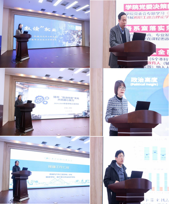学院党委副书记黄中子作2025年就业工作总结。学院副院长张立强、航飞学院教师李佩绮分别作课程思政建设工作总结、课程思政经验分享。工会主席骆佼作2025年工会工作总结、张恒运教授作科研工作交流分享、沙玲老师分享援疆工作经历。倪军、吴昌儒2位新入职教师分别作自我介绍。