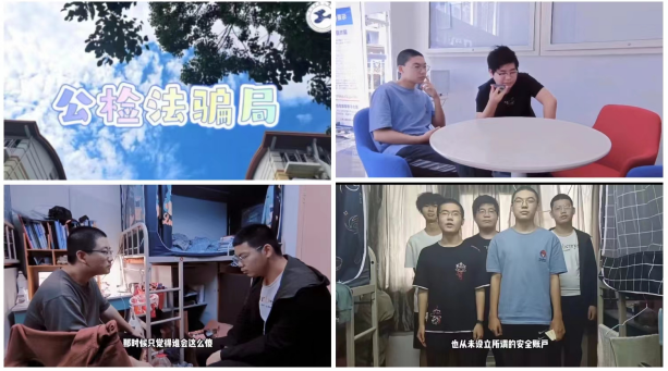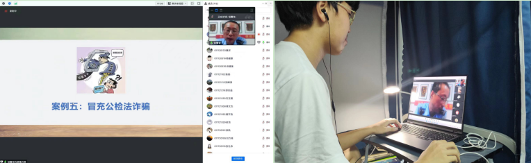 活动通过召开诚信主题教育班会,将诚信教育融入班级建设,引导学生积极践行社会主义核心价值观。同时,为加强诚信主题教育宣传,提升学生防诈骗意识,邀请松江大学城派出所民警钮警官为学生就近期校园诈骗真实案例进行专题解析,着重对利用疫情防控侵害大学生合法权益的违法案例进行解读。此外,机汽学院资助辅导员李适老师组织专业学生拍摄防诈骗网络短剧《公检法骗局》。短剧还原真实校园诈骗案例,剧情诙谐幽默,具有较强的警示教育意义,让同学们在欢乐中学习防诈骗知识的同时,活跃了疫情期间的封闭校园生活。