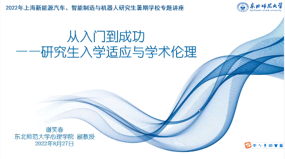 2022年8月27日13:00-15:00,通过华为云会议视频平台,东北师范大学副教授、中国心理学会网络心理专业委员会委员、国际行为发展研究会(ISSBD)会员谢笑春为暑期学校做题为《从入门到成功——研究生入学适应与学术伦理》的线上专题讲座。讲座由英国上市公司365党委副书记王东阳主持。