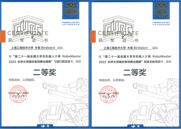近期,全国大学生机器人大赛RoboMaster机甲大师超级对抗赛2022赛季全国赛落下帷幕,建队刚满三年的木鸢Birdiebot战队经过无数个不眠之夜的设计、调试,克服疫情下的种种困难,终于成功拿下全国对抗赛的一等奖,在单兵种哨兵机器人、工程机器人实战中均获一等奖,并首次收获单项赛 “飞镖打靶”和“英雄吊射”的全国奖项,成绩斐然。