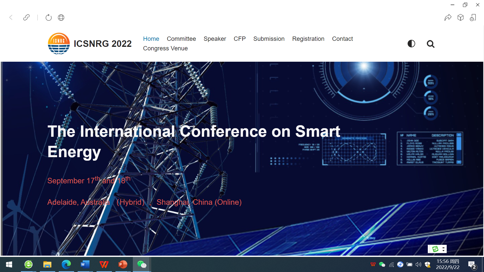 9月17-18日,2022智慧能源国际会议The International Conference on Smart Energy(ICSNRG2022)在线上隆重举行。因新冠肺炎疫情影响,会议通过ZOOM会议平台在线直播。来自澳大利亚、法国、荷兰、美国、英国以及中国专家学者在线上共聚一堂,就智慧能源、低碳社区、可再生能源和存储以及相关人工智能(AI)应用领域热点问题进行了交流,分享研究和实践的前沿知识和经验。