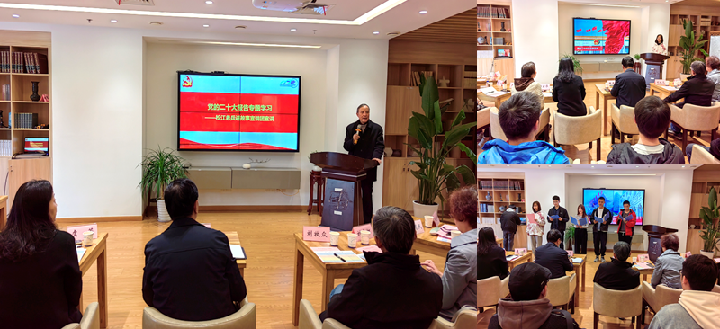 会上,开展了党的二十大报告专题学习。松江老兵讲故事宣讲团团长朱渭民讲述了铁道兵为国修路、为民造福的光辉史迹,并现场演唱了自创的《老兵之歌》,勉励广大青年以“艰难方显勇毅,磨练始得玉成”的信心和勇气,努力成长为祖国的栋梁之才。学院思政宣讲团成员讲述了《以高水平创新推动高质量发展》、《浦东精神》微党课,用详实、生动的案例讲述了新时代十年的伟大变革。