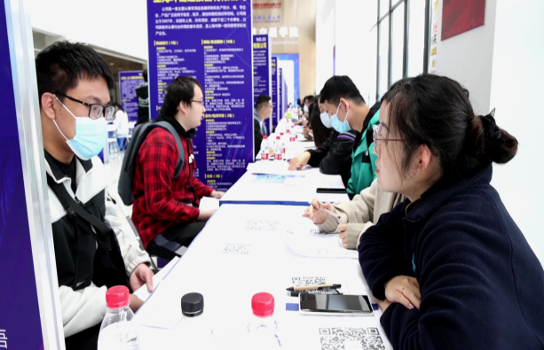 各招聘企业以展板、传单的形式,从企业文化、薪资标准、任职要求等多个方面向应聘者展示职位情况,让毕业生更加直观地了解与选择岗位,招聘会现场氛围火热。