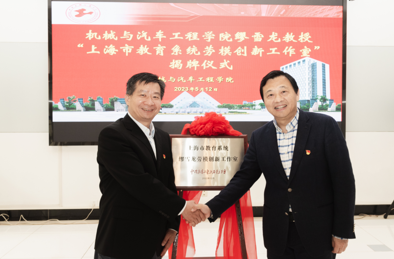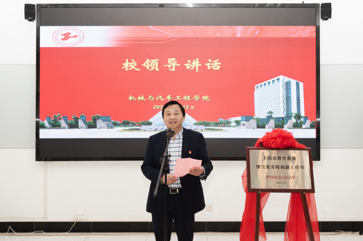 校党委副书记、工会主席史健勇为缪雪龙教授获批上海市教育系统劳模创新工作室揭牌并表示祝贺。他指出,劳模创新工作室是一个新平台、新载体,对于促进学校创新型建设具有十分重要的意义。他表示,创建劳模创新工作室是学校加强人才工作的缩影,反映了学校对人才工作的重视。他强调,要把劳模创新工作室打造成一个优秀平台,重点要做好三个方面的工作:一是加强对劳模创新工作室的管理和服务,要将劳模创新工作室创建活动列入学校和学院工会工作重要议事日程,纳入学校技术创新和人才培养规划,关心工作室成员的成长进步,保护工作室成员的创新创造热情,在总结推广创新成果、推荐申报创新先进人物时给予关心和扶持;二是发挥名师和名牌效应,把创建学习型、知识型、技能型职工队伍作为一项重要工作,培养职工艰苦奋斗、开拓创新的职业素质和精益求精的工作作风,进而引导学生更好地形成实业报国的家国情怀和报国之志;三是创造特色工作室,做好示范引领,要积极将工作室打造成在爱岗敬业、奉献祖国、服务人民的过程中鲜活的载体,充分发挥工作室的“孵化器”作用,培养孵化出更多的高技能人才,为学校学院高质量发展提供强大的人才支撑。