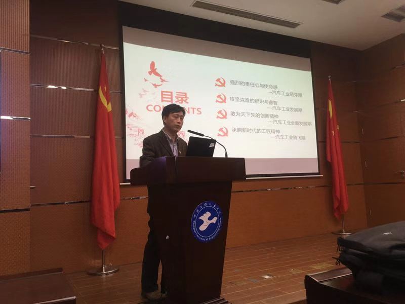中国汽车发展的过程离不开中国共产党人的精神品质和创造精神。就此,邢彦锋老师给学生们进行了中国汽车工业发展创新精神专题教育。正是因为一代代中国共产党人身上中华复兴的责任使命、攻坚克难的胆识才智、敢为天下先的创新精神和承启新时代的工匠精神,中国汽车工业才得以蓬勃发展。