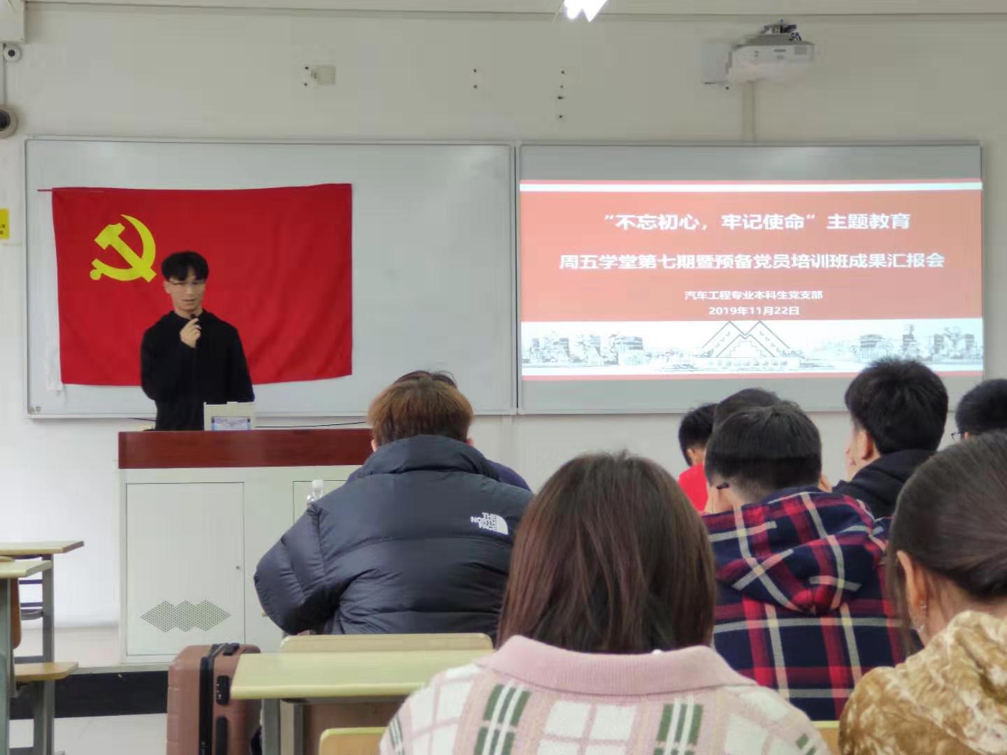 据悉,“周五学堂”为汽车工程专业本科生党支部主题党日活动,每个月第三周周五召开,现已开展到第七期。“周五学堂”旨在引导党员自主学习,并面向支部同学进行交流分享,提升党性修养。