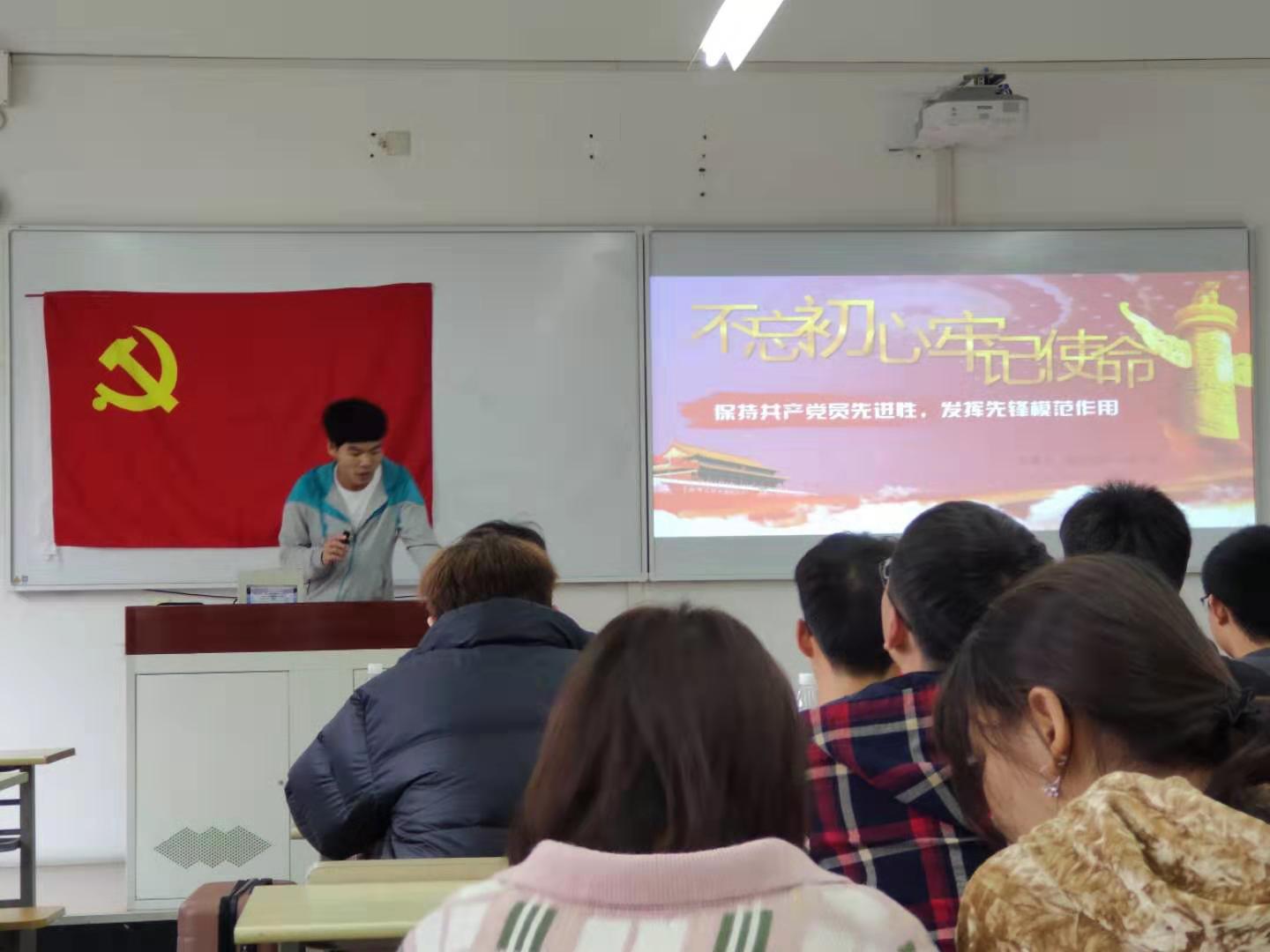 本次专题学习由支部预备党员吴立波、王皓晨主讲。吴立波围绕“保持共产党员先进性,发挥先锋模范作用”主题,从四个部分:党员的先进性是什么、为什么要保持党员的先进性、如何保持党员的先进性与预备党员培训班成果进行此次汇报。吴立波表示,共产党员应当具有的先进性,既是一种品质,又是一种能力,也是一种行为,更是品质、能力、行为三者的统一,三者有机统一才是先进性的真正魅力。大学生党员需要培养担当意识,挺身而出,做敢担当的有为青年;培养服务意识,认真学习领会“我将无我,不负人民”的精神。