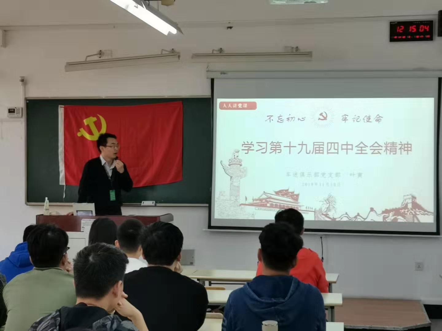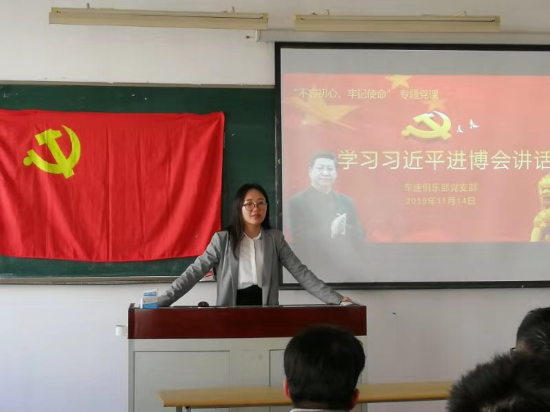 车迷俱乐部党支部书记吕悦的党课以“学习习近平进博会讲话”为主题。吕悦老师向支部党员介绍和讲解了举办进博会的意义,第一届进博会的成果,面对各国的几点倡议,更高水平开放的措施,和对美好未来的畅想。面对世界百年未有之大变局,中国政府向世界发出了“主动扩大进口”的信号,这是一种战略,更是一种自信。作为新时代的汽车人,尤其是我们车迷俱乐部的党员同志们,更应该在平时的生活和学习中起到党员先锋的带头作用,努力做好自己的本职工作、学好专业知识,为祖国奉献出自己的一份力量。