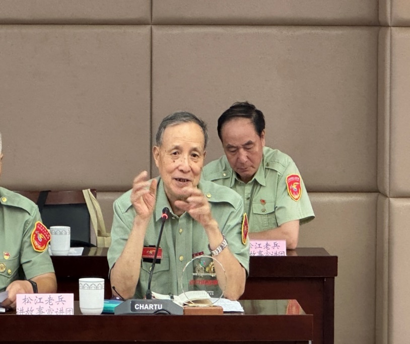 虞蓉书记在会上回顾了学院与松江老兵宣传团的共建工作开展情况,并就合作共建在机制建设、内涵创新、育人实效方面进行了工作交流。她指出,思想政治教育一是要有时代性,要适应时代发展,紧紧围绕党的最新理论、实践,引导学生关注党、国家和社会的发展动向,增强对党和国家正确认知;二是要有创新性,通过创新教育方式、内容和形式,深入学生内心,引发共鸣,使思政工作更具吸引力、互动性,三是要有实施性,以“红色宣传团”品牌融入思政教育的全过程,激发学生的内生动力,提高思政工作实效性。她强调用红色故事融入学院立德树人工作,赋能学院思政育人阵地建设,推动立德树人见实效。下一步,学院将积极探索思政育人工作新方法,为青年学生的健康成长发展提供有力引领和支撑。