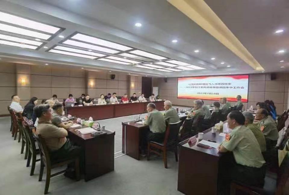 宣讲团朱渭民团长做年中工作小结。他回顾了今年老兵宣讲团的宣传开展情况,同时就如何讲好红色故事提出新的思路。即一是要把党的政治理论、二十大精神融入故事中;二是要紧跟时事、与时俱进不断推陈出新;三是始终保持:“戎装亮眼、全程站立、脱稿讲述”,要“凡有邀请、老兵必到”,在听众中建立良好的口碑。