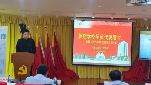 机械工程专业2022级研究生周宇轩代表全体暑期学员发言,他表示要珍惜此次暑期学校来之不易的机会,认真学习,刻苦钻研,在以后的科研道路上加以运用,把创新、应用、提高作为学习的最终目的。