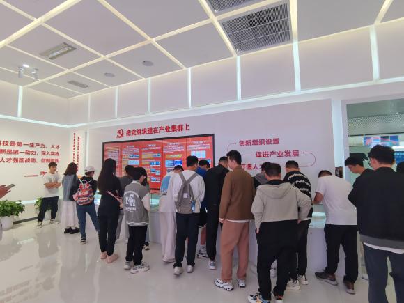 一行来到正泰智慧能源产业集群阵地,参观了正泰启迪智电港产业展示中心和泰扬红党群服务站,正泰党委将党的政治优势、组织优势转化为产业发展优势,打造全产业链一体化发展新生态,在光伏、智慧城市解决方案、电力能源服务、新一代智能环保产品等方面获得不俗的成绩,在党建引领下全力打造长三角G60科创走廊智慧能源产业集群航母。随后,党员们参观了“闲猫”国际青年社区党群阵地,“闲猫”通过把“党组织建在产业集群的人才公寓里”,将各类政策资源、活动资源下沉到青年人才身边,聚焦青年群体的住房需求,主动服务产业集群的青年人才,提升青年人才的归属感与幸福感。