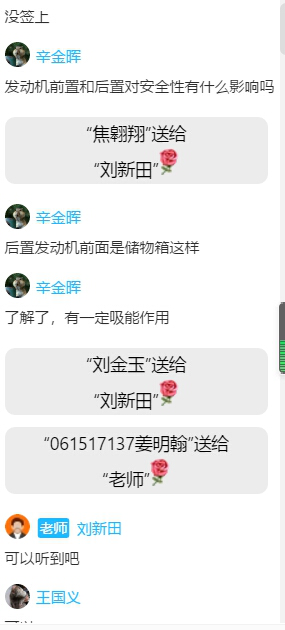 在线上第一课中,刘老师积极回应当下时政,与同学们分享了自己在疫情区的所闻所见,清晰掌握学生思想动态情况。为了在疫情期间打消学生悲观消沉的情绪,刘老师经常采用诙谐的方式鼓励学生,告诉学生“国家有难,匹夫有责”,举国攻难克艰之际,更应该珍惜来之不易的学习机会,学好车辆工程专业,在国家和人民需要时,为汽车产业创新发展奉献自己的一份力量。